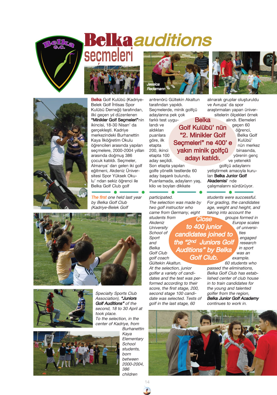 Belek'te gerçekleştirilen yetenek seçmeleri, Belka Golf Kulübü ev sahipliğinde ve Belka YKB Başkanı Mustafa (Çekiç) Beyzadeoğlu'in organizasyonunda yapıldı. Seçmelerde, Türkiye'nin geleceğe umut vadeden genç golf yetenekleri Alman uzmanlar tarafından titizlikle incelendi.